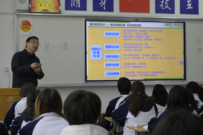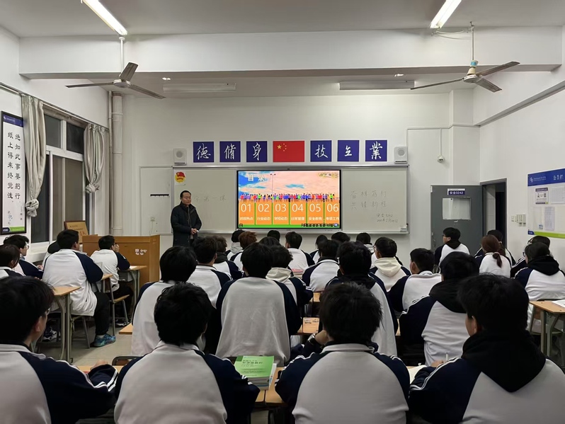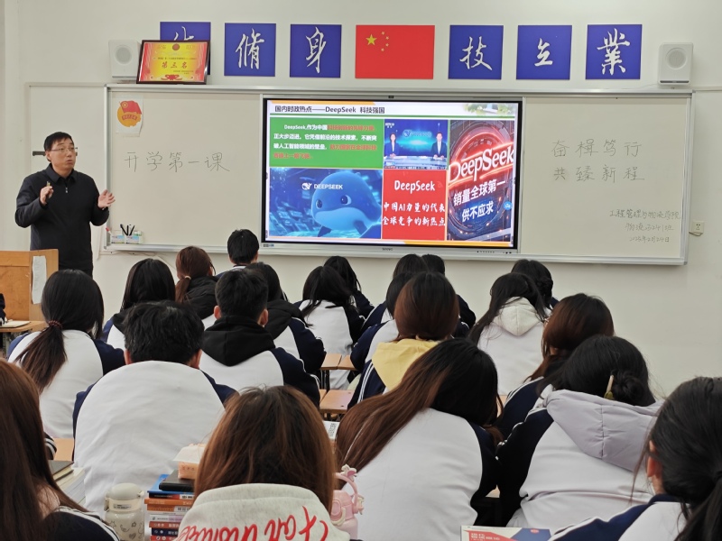 在物流3241班教室,韩小卫董事长从春节申遗成功、电影《哪吒2》热播等看文化自信,到机器人扭秧歌、DEEPSEEK科技突破看科技强国等国内时政热点,激励学子胸怀家国,勇担使命。随后,韩董事长回顾春运“大考”、点赞最快高铁列车、陕港高铁开通、领航盾构机等中国制造,勉励员工关注社会发展,投身时代洪流。最后,韩董事长立足学校实际,介绍就业情况、解读“四大行动”,并围绕安全教育和心理健康教育,引导员工健康成长,全面发展,为员工们上了精彩的“开学第一课”。