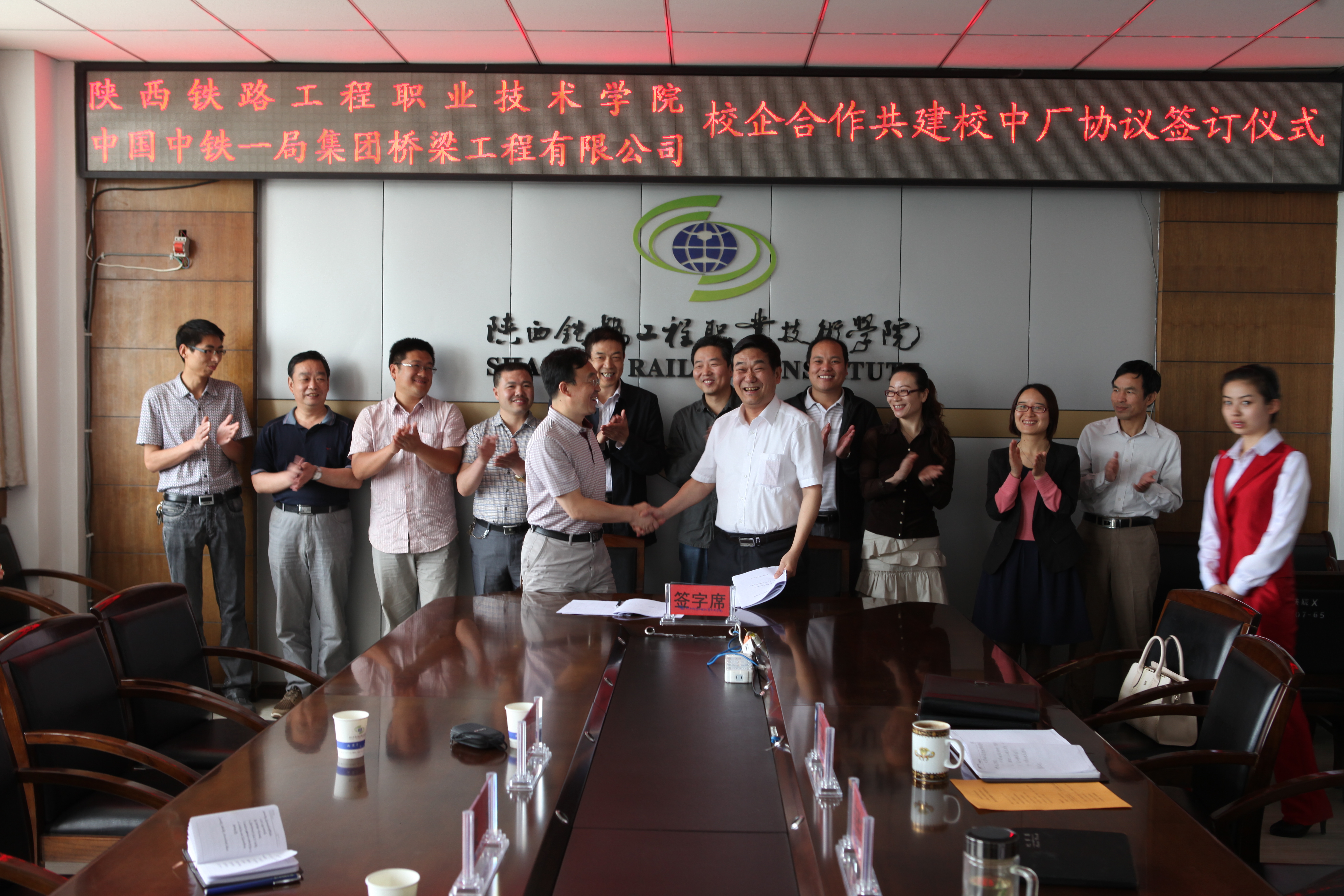 签字仪式由焦胜军副经理主持,校企合作处、各相关系部主任、教务处负责人以及中铁一局桥梁工程有限公司工会主席梁永、物资经营中心经理罗庭明等见证了这一历史时刻。