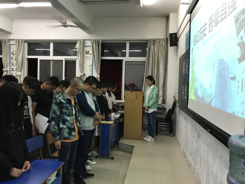 活动以一曲《松花江山》把在场师生带到了86年前那个悲惨的时刻,大家仿佛听到了国破家亡、流离失所的难民们悲痛的呻吟,看到了奋战于白山黑水、不屈勇士的铮铮铁骨……随后,辅导员张老师以PPT、宣传短片的形式带大家学习了那段历史,回顾了那段让中国人民痛彻心扉的岁月,并带领同学们默哀三分钟,以此呼吁同学们以史为鉴、铭记国殇、奋发向上、开创未来。班导生赵智勇感慨地说,今天的和平来之不易,少年智则国智,少年强则国强!我们当代老员工应自觉肩负起实现中华民族伟大复兴的历史重任,好好学习,自立自强,用实际行动为建设更加辉煌的祖国而贡献力量。