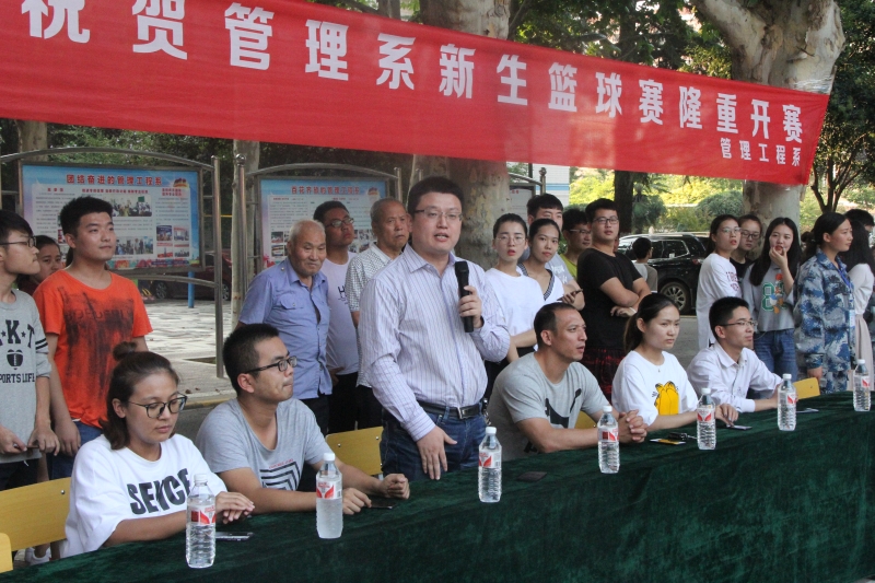 激情赛场,挥洒汗水。9月21日下午,管理系2017届新生篮球赛在临渭校区B楼小操场打响揭幕战。本届比赛共有14支队伍参加,系党总支书记刘渭锋、辅导员吴鹏飞等老师和大一新生共计200余人参加了开幕式。